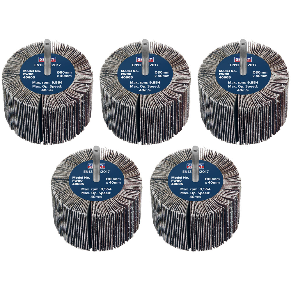 3. Sealey FW8040605 80 x 40mm Abrasive Flap Wheel on 6mm Shaft 60Grit - Pack of 5 99.30