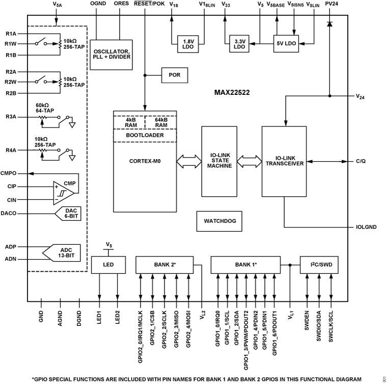 IO-Link Device Transceiver with Integrated Cortex-M0 and Analog Front End