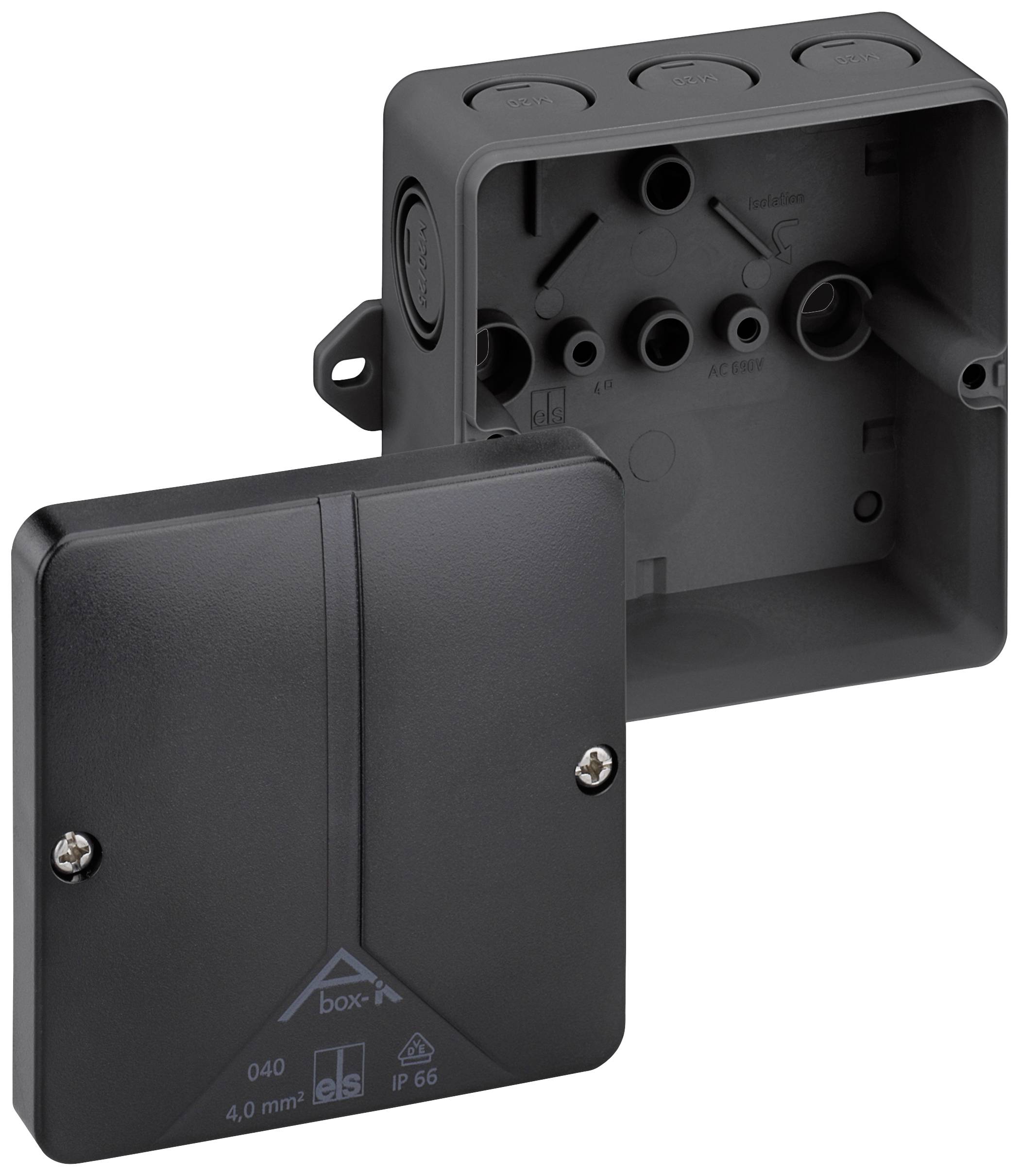 4. Puszka instalacyjna Spelsberg Abox-i m 040 AB-L/sw, IP65, (D x S x W) 94 x 94 x 57 mm, czarny, 1 szt. 79.49