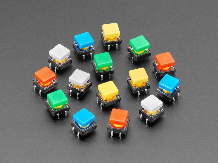9. Adafruit Colorful 12mm Square Tactile Button Switch Assortment - 15 pack 1.92 x15