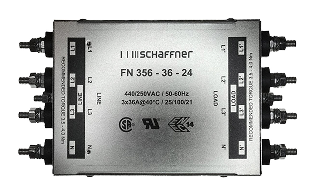 15. Filtr EMI 36A 3-fazowy 440/250 V AC 60Hz Schaffner Montaż w obudowie 2216.05
