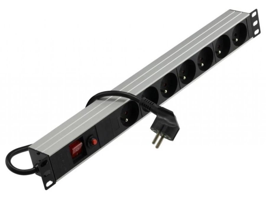 Listwa zasilająca antyprzepięciowa RACK 19" 1U 7 gniazd z wyłącznikiem 1,8m