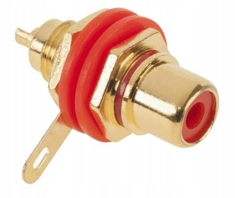 Gniazdo RCA Cinch montażowe do obudowy pozłacane czerwone