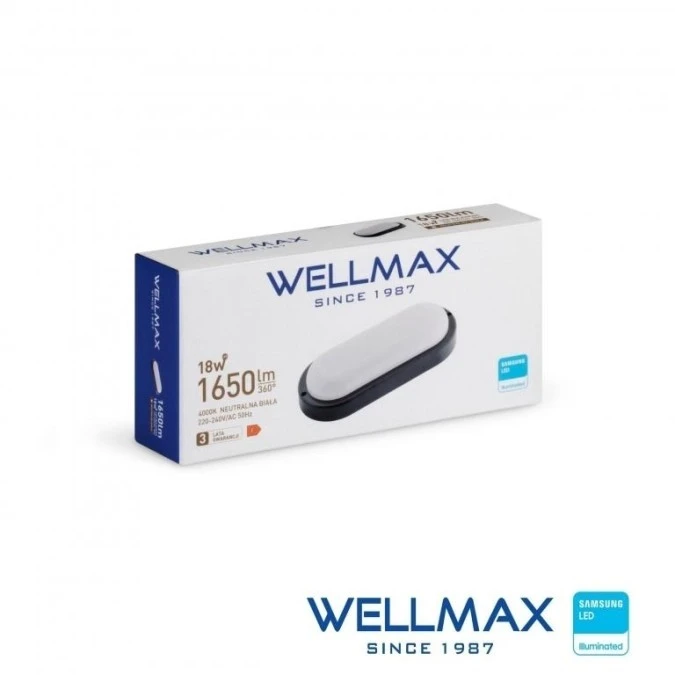 2. Lampa LED Bulkhead Owalny Czarny 18W 92lm/W 1650lm IP54 Neutralna 4000K SAMSUNG / GOL1BHOBN018 31.54