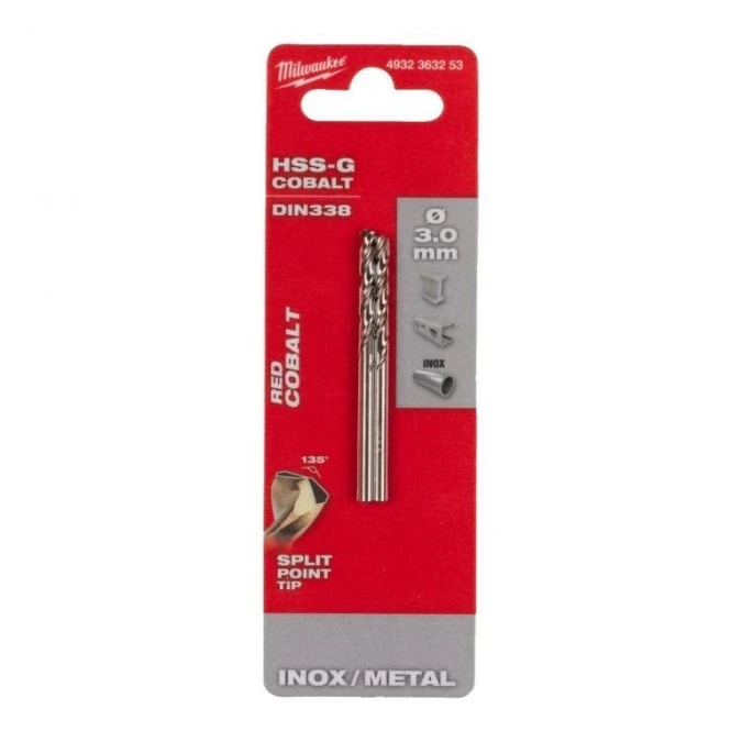 Wiertło do metalu HSS-G kobaltowe 3x61mm RED COBALT MILWAUKEE Blister 2szt