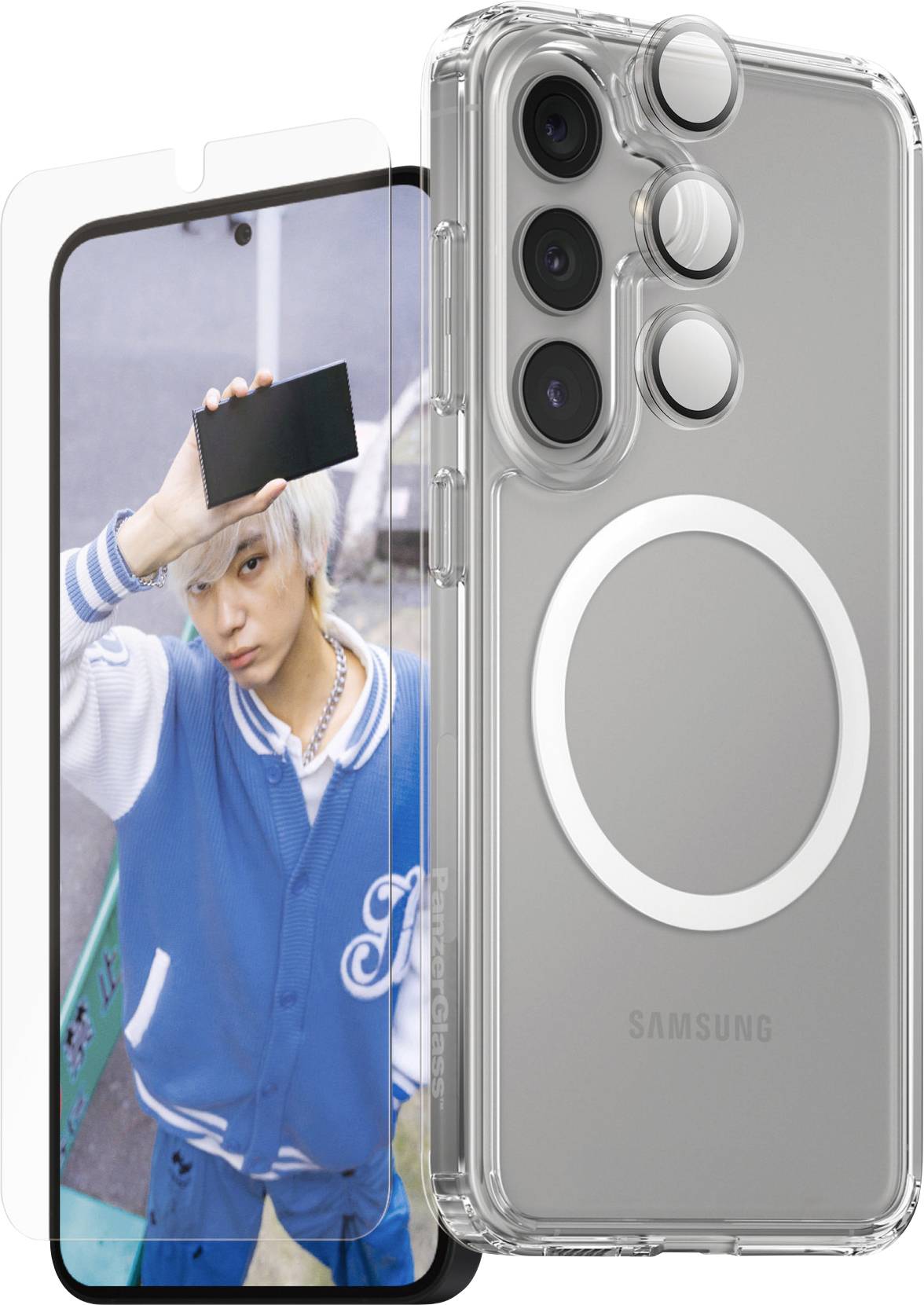 4. PanzerGlass CARE Flagship 3-in-1 Zestaw pokrywa + szkło ochronne Samsung Galaxy S25 przeźroczysty Ładowarka indukcyjna, 159.00
