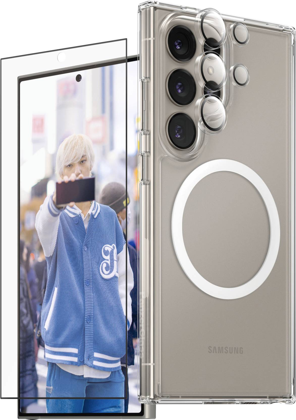 PanzerGlass CARE Flagship 3-in-1 Zestaw pokrywa + szkło ochronne Samsung Galaxy S25 Ultra przeźroczysty Ładowarka indukc