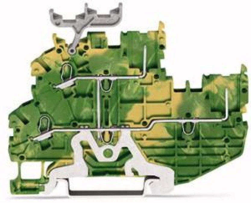 Dwupiętrowa złączka bazowa X-COMS PE 1-przewodowa / 1-pinowa żółto-zielona 2020-2237 /50szt./