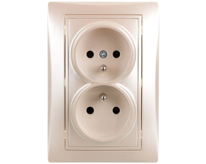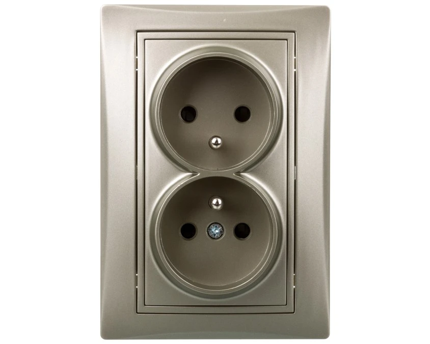 DOMO Gniazdo podwójne kompletne ochrona styków śrubowe 16A 250V szampański 011260150 25033