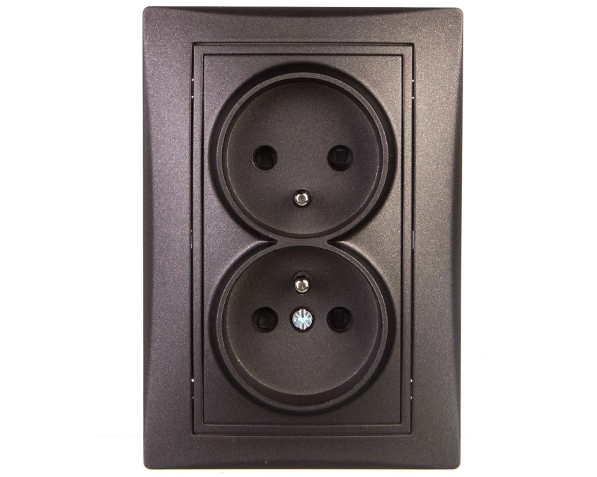DOMO Gniazdo podwójne kompletne ochrona styków śrubowe 16A 250V grafit 011260141 24915