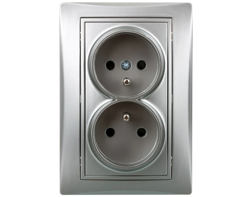 DOMO Gniazdo podwójne kompletne ochrona styków śrubowe 16A 250V srebrny 011260143 24856