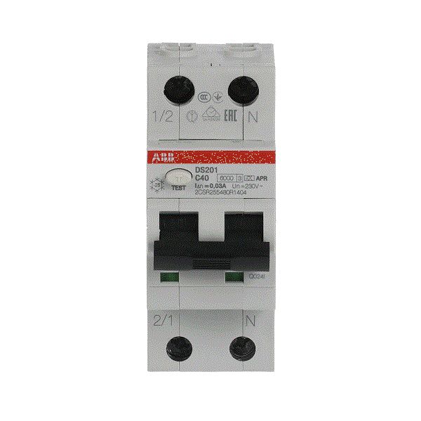 6. RCCB, Typ C, 2-biegunowy, 40A, 30mA, ABB, DS201 DS201 240V 1127.11