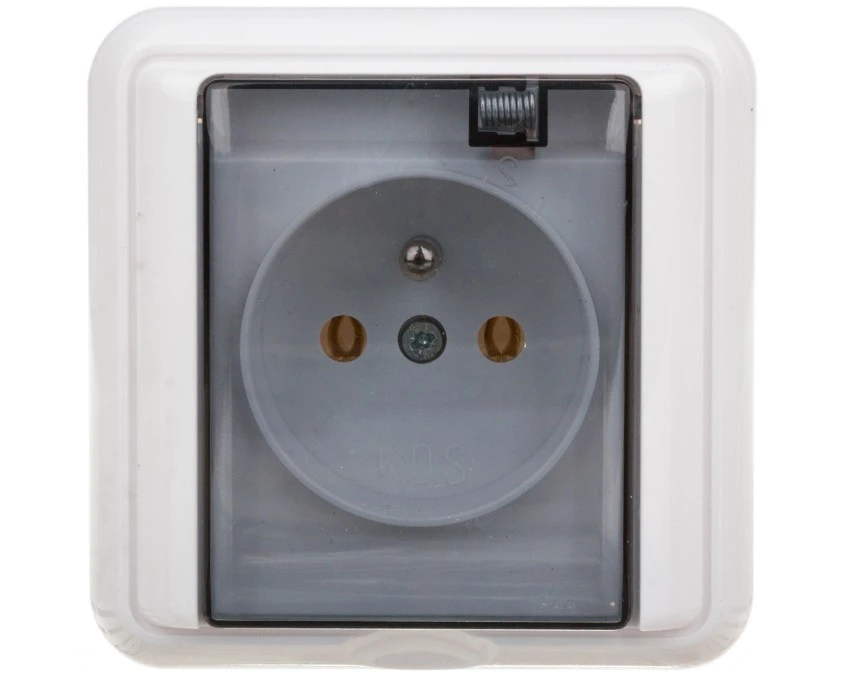 JUNIOR IP54 Gniazdo pojedyncze z uziemieniem schuko (klapka dymna: bez przesłon) popielaty 10GHE-1sd KARLIK