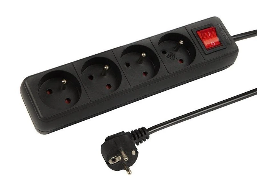 13. Przedłużacz z wyłącznikiem 4-gniazda z/u 1,5m /H05VV-F 3G1/ czarny LANBERG 19.22