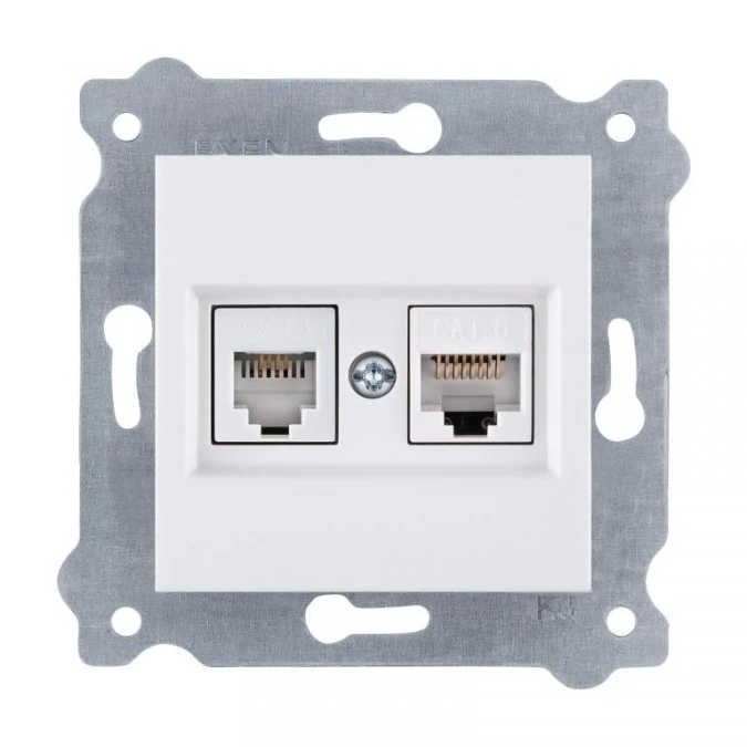 Gniazdo komputerowe kat.6 + gniazdo telefoniczne ( Kat. 6, Kat. 3, RJ45, RJ11 ) Biały 256/01