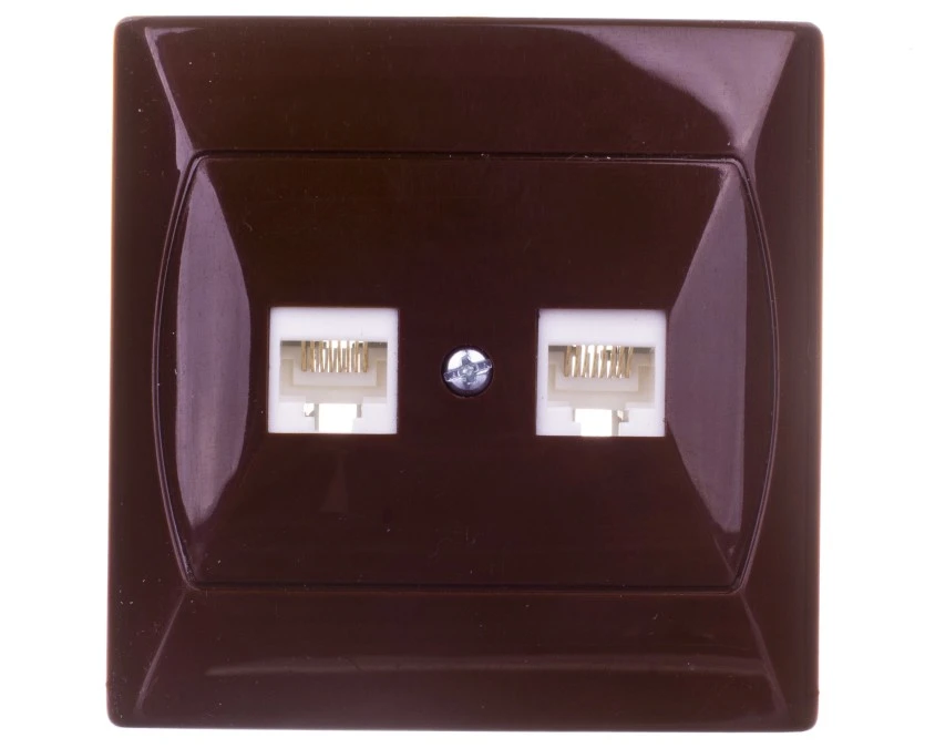 AKCENT Gniazdo komputerowo-telefoniczne RJ 45 kat. 5e (8-stykowe) + RJ 11 (4-stykowe) brązowy GPKT-A/F/24 OSPEL