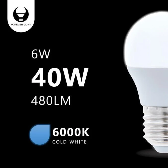 8. Żarówka LED E27 G45 6W 230V 6000K 480lm Forever Light RTV003658 6.25