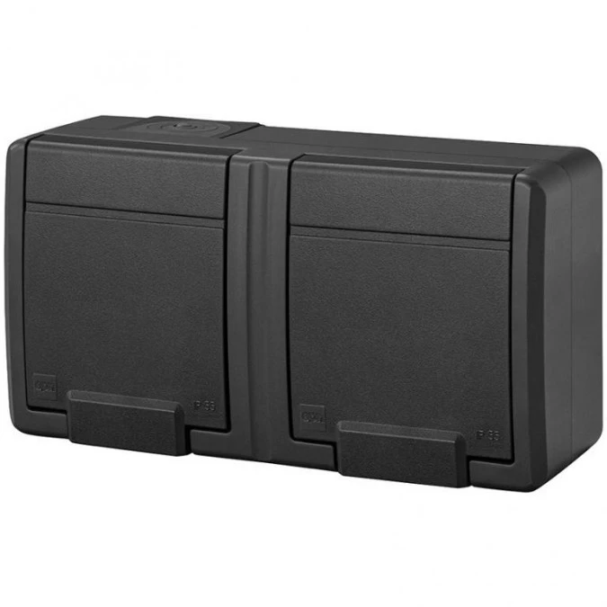 14. Gniazdo zasilające podwójne natynkowe hermetyczne IP65 antracytowe z klapką 2x [2P+Z] 16A Aquant 2K 67.00