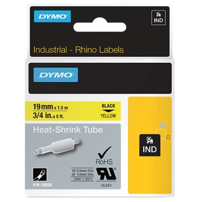 Taśma DYMO IND Rurka termokurczliwa 24mm x 1,5m (żółta/ czarny nadruk) RHINO Industrial 1805444 ORYGINALNA