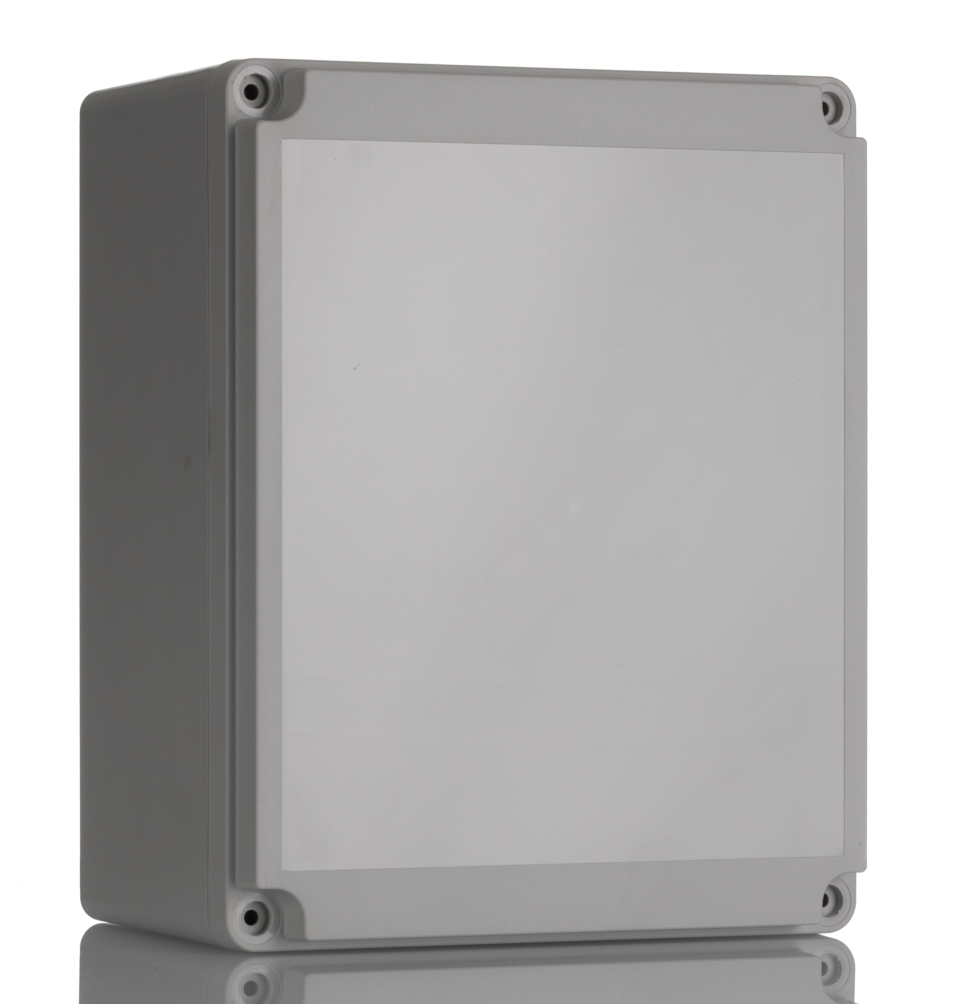5. Obudowa ogólnego użytku Poliwęglan szerokość zew. 200 mm długość zew. 250 mm wys. zew. 130 mm Hammond IP65 Jasnoszary 609.96