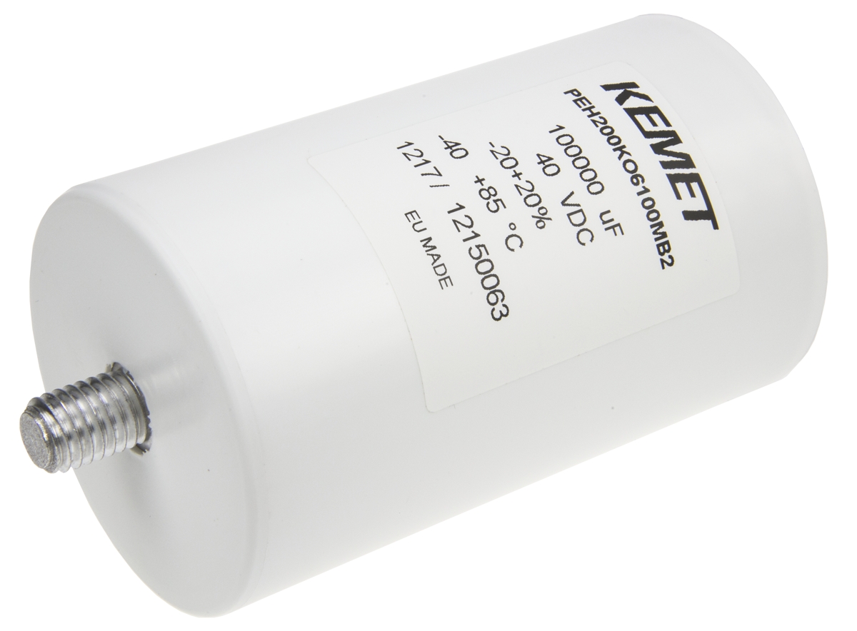Kondensator 0.1F 40V dc Montaż na kołku KEMET 66.6 x 109.2mm
