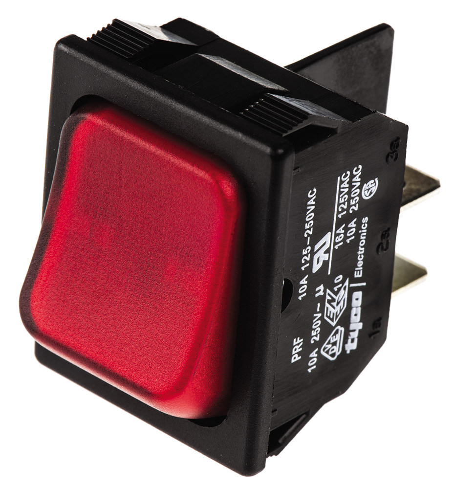 Przełącznik kołyskowy Wł.-wył. podświetlany 10 A DPST Czerwony TE Connectivity