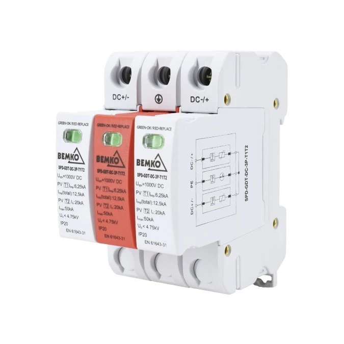 5. ogranicznik przepięć 3P 12.5kA DC 1000V KLASY T1+T2 z iskiernikiem gazowym A52-SPD-GDT-DC-3P-T1T2 142.96