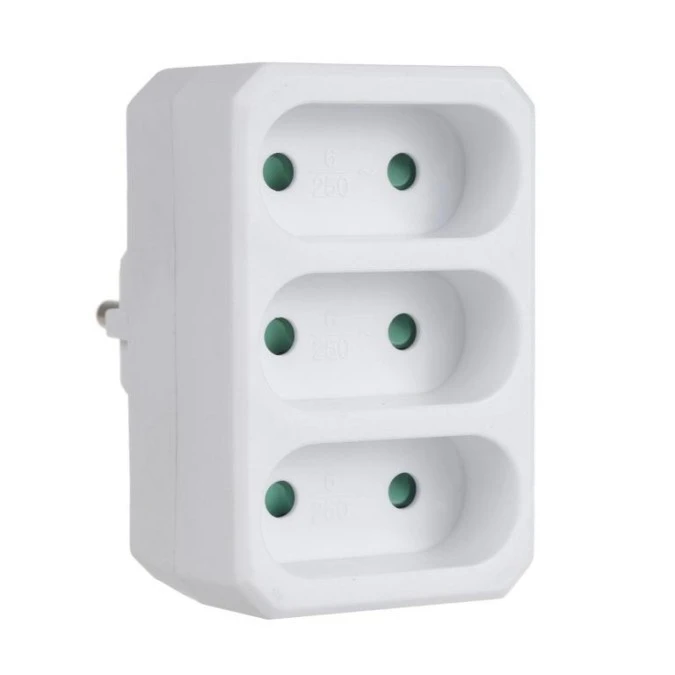 13. Gniazdko prądowe potrójne płaskie Maclean Energy MCE2123x6A wtyk uniwersalny MCE212 7.64