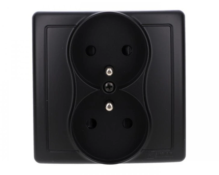 6. Simon Basic Gniazdo wtyczkowe z uziemieniem podwójne, monoblok, z przesł.torów prądowych zac.śrubowe czarny kompletne BMGZ2Z/49 30.97