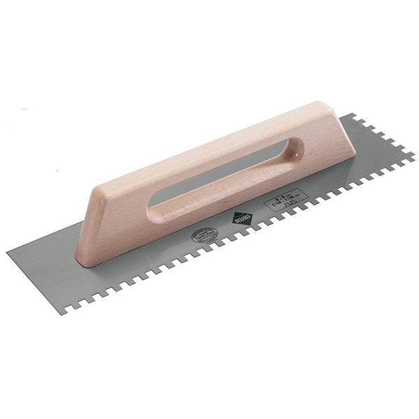 RUBI Tiling Tools 75962 Notched Steel Trowel Wooden Handle 19in