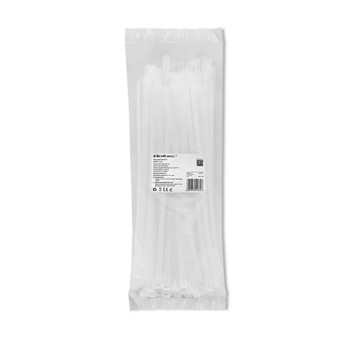8. Qoltec Opaski zaciskowe wielorazowe/trytki 7.2*300mm Nylon66 UV Białe 26.32