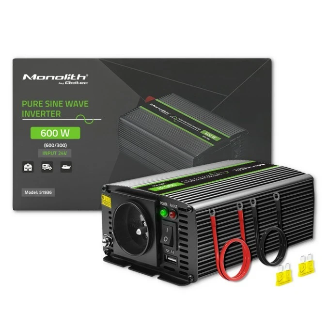 14. Qoltec Przetwornica napięcia Monolith 300W 600W 24V na 230V Czysty Sinus 199.22