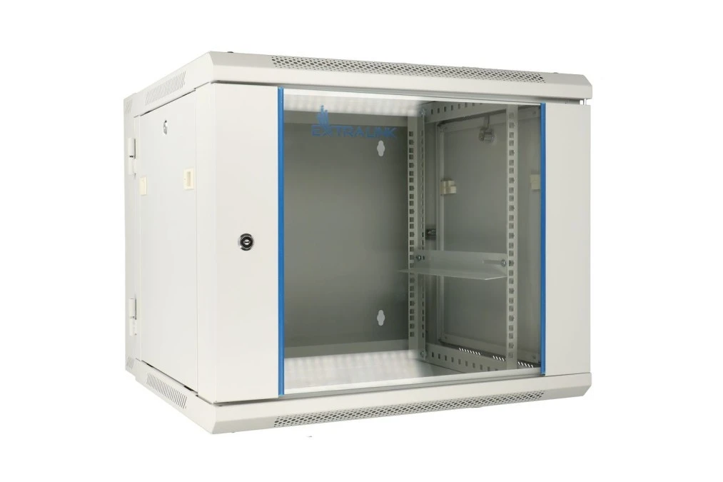 1. Szafa rack montowana na ścianie, drzwi blaszane pełne Extralink 12U 600x600 ASP Szara 477.84