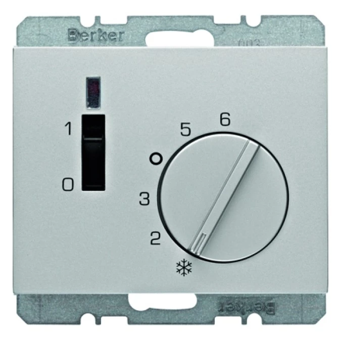 6. Berker Q1 Regulator temp. podłogi ze stykiem rozwiernym, elementem centralnym, łącznikiem i 2 diodami LED biały aksamit 20346089 991.15