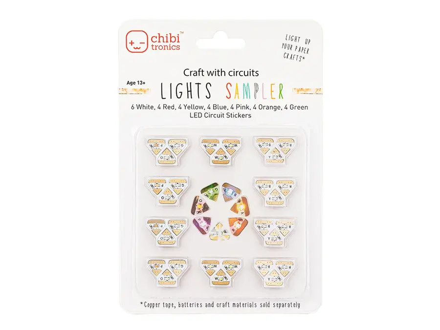Chibitronics Circuit Stickers LED MegaPack (30 stickers) - Red, Yellow, Blue, Pink, Orange, Green and White