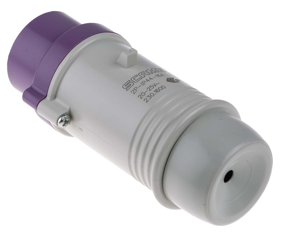 Złącze przemysłowe - zasilające 16A Wtyczka 20 → 25 V. 2P Męski Scame Fioletowy Montaż na kablu IP44