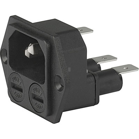 7. Złącze IEC IEC C14, C18 Montaż na panelu Męski 10A Proste liczba bezp 2 Szybkozłączne Schurter 108.26