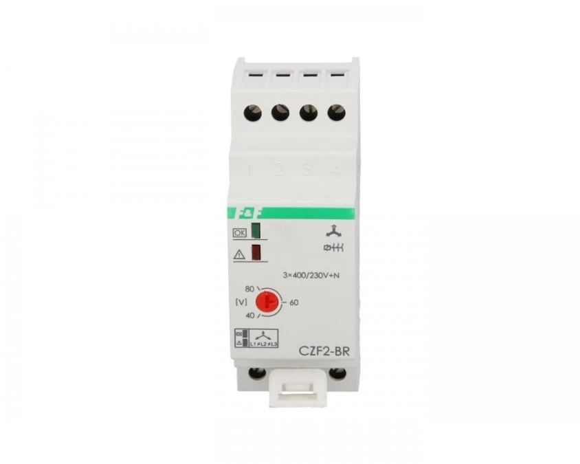 8. Przekaźnik zaniku i asymetrii faz z kontrolą styków stycznika 10A 1Z 4sek 40-80V CZF2-BR 133.79