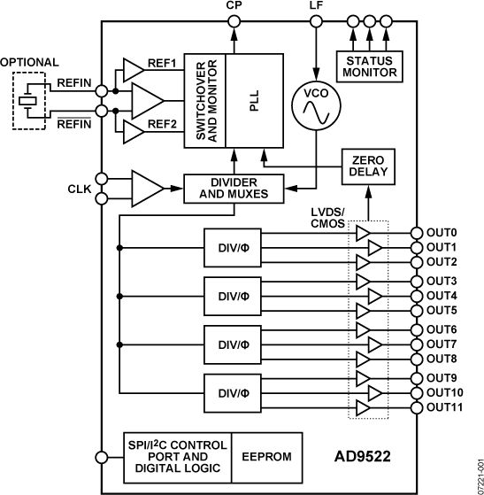 12. 12 LVDS/24 CMOS Output Clock Generator with Integrated 2 GHz VCO Sample