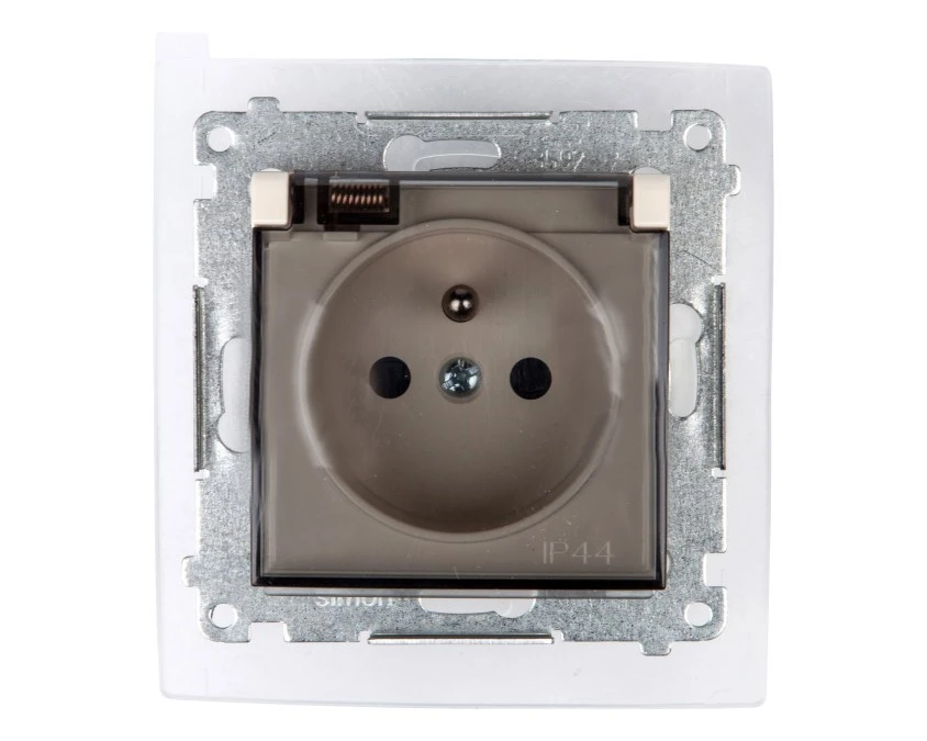 SIMON BASIC Gniazdo pojedyncze z uziemieniem z klapką transparentną IP44 srebrne BMGZ1B.01/43A KONTAKT SIMON