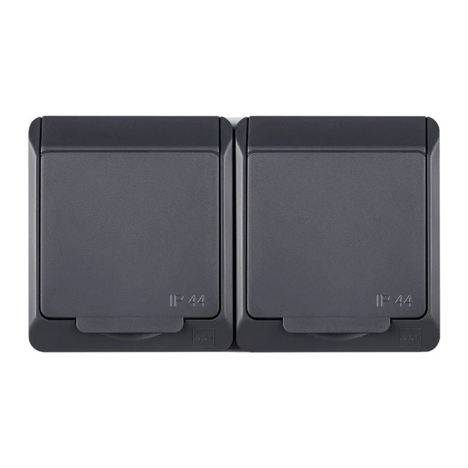 9. HERMES Gniazdo podwójne z/u 2P+Z SCHUKO IP44 antracyt 0325-07 28.94