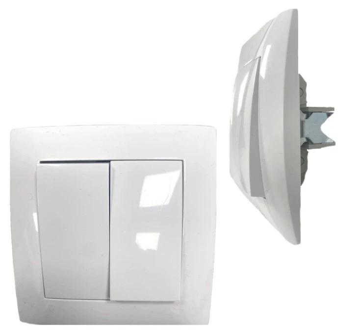 Włącznik Podwójny do światła Łącznik Świecznikowy Podtynkowy Biały WESA