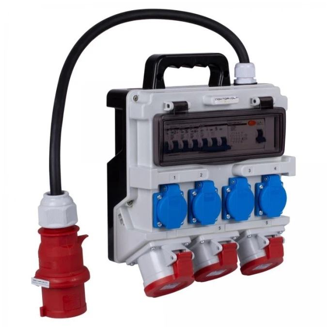 Rozdzielnica budowlana TR-S/FI hermetyczna IP44 Wyposażona + 3x gniazdo siłowe 5p (400V 32A + 2x16A) + 4x gniazdo 2P+Z (230V 16A