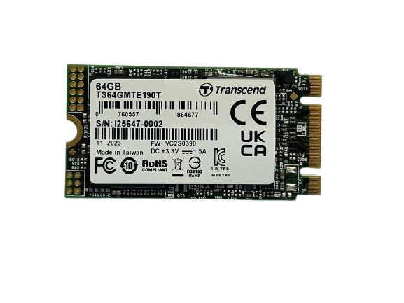 8. Dysk SSD TS64GMTE190T, 64 GB, PCIe NVMe Gen 3.0 x 2, wewnętrzny Tak, Transcend 3D TLC 161.44