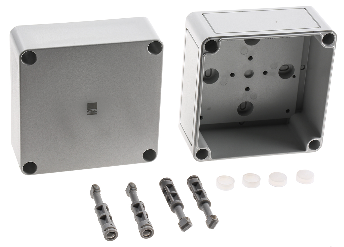3. Obudowa Poliwęglan szerokość zew. 110 mm długość zew. 110 mm wys. zew. 90 mm Rittal IP66 Szary 186.74