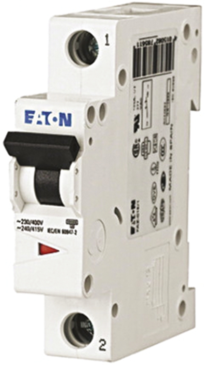 8. Wyłącznik nadprądowy MCB, Typ C, 1-biegunowy, 1A, 230 → 400V, na szynę DIN, Eaton 179.86