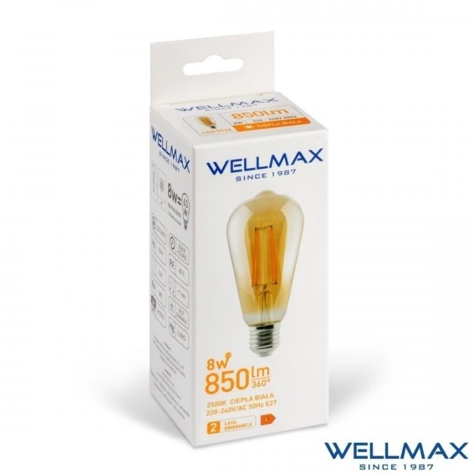 Żarówka WELLMAX LED FILAMENT E27 8W 106lm/W 850lm ...