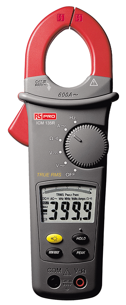 Miernik cęgowy RS PRO Prąd, napięcie kategoria CAT III ICM135R