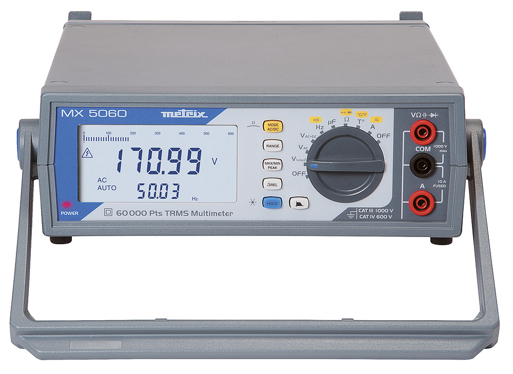 Multimetr Stacjonarny True RMS: Tak Natężenie prądu przemiennego, Napięcie prądu przemiennego, Pojemność, Przewodzenie,