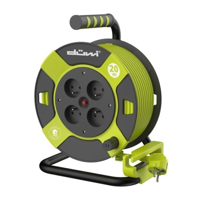 12. Przedłużacz bębnowy 4-gniazdowy H05VV-F 3G1.0, 20m lemonkowo-czarny / 24621 128.25